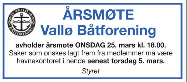 Vallø båtforening tar forbehold om trykkfeil og feiltolkninger. Vedtekter og regelverk er styringsverkøyet for Styret og Havnekontoret.